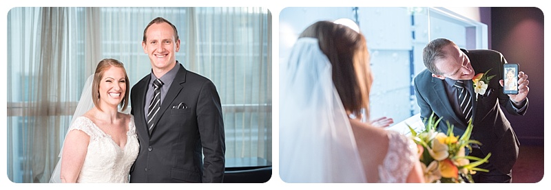 For their wedding, Loren and Brett wanted a low-key celebration with family and friends and All Smiles Docklands fit the bill perfectly. Although we were threatened with grey clouds and squalling rain before and during the indoor ceremony, everyone managed to stay warm and dry. Celebrant Sharon Palmieri had everyone in stitches with her enthusiastic re-telling of how Loren and Brett met and got together.